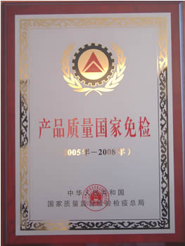產(chǎn)品質(zhì)量免檢證書
