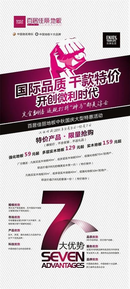 首屆“百居佳麗杯”我愛(ài)我家秀激情開(kāi)幕訂購(gòu)地板,上傳照片,拿大獎(jiǎng) 1.活動(dòng)說(shuō)明 湖州百利達(dá)木業(yè)有限公司是一家集專業(yè)研發(fā)、加工、生產(chǎn)、銷售、服務(wù)為一體的快速成長(zhǎng)型企業(yè)。公司坐落于素有“實(shí)木地板之都”美譽(yù)的浙江南潯,東臨上海,西抱太湖,地理區(qū)域位置優(yōu)越,產(chǎn)品供貨暢達(dá)便捷,F(xiàn)已擁有湖州百利達(dá)木業(yè)和江蘇百利達(dá)木業(yè)兩大生產(chǎn)基地,新的強(qiáng)化地板生產(chǎn)基地也與2010年上線生產(chǎn)。