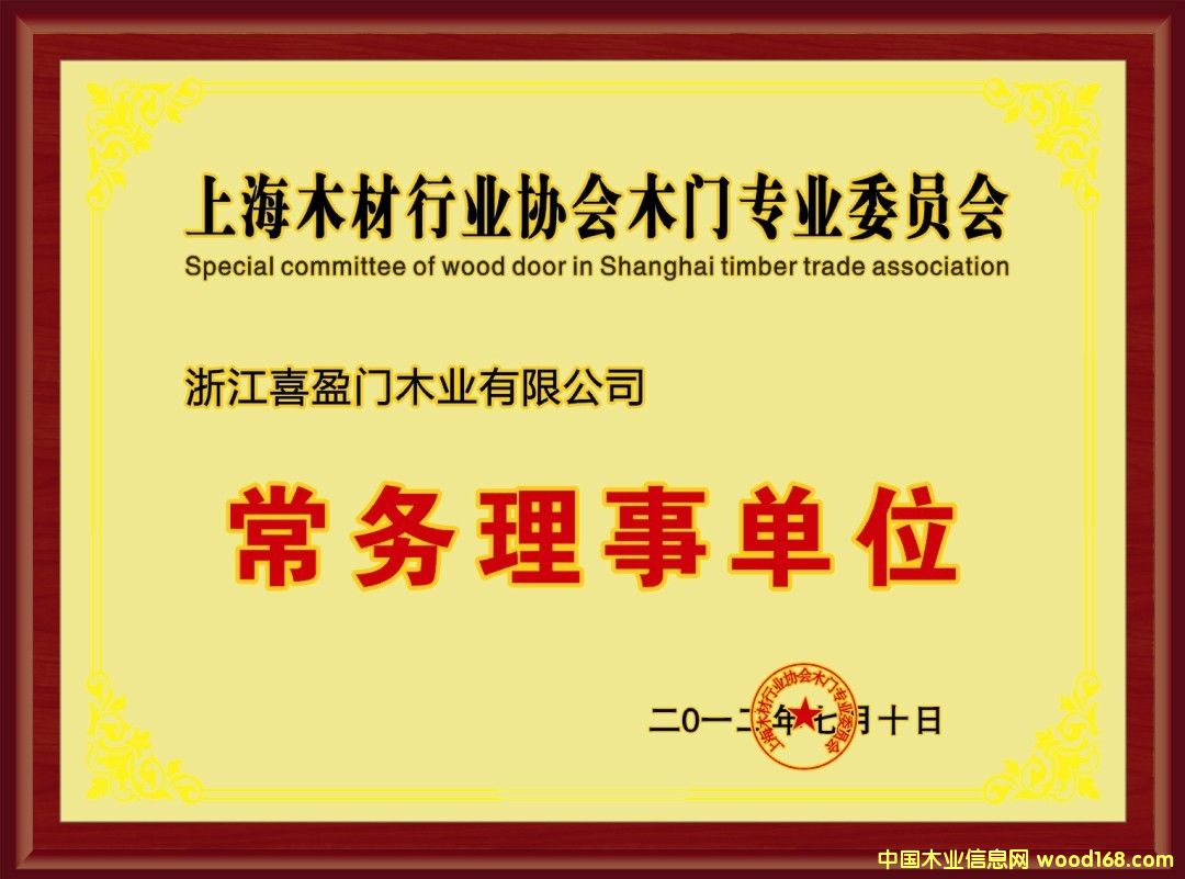 在2013年中國木材與木制品商會暨中國木材與木制品行業(yè)年會中,喜盈門榮獲“副會長單位”。喜盈門的發(fā)展與變革,讓木門不再僅僅是家裝材料,更成為一種生活藝術(shù)。將多年始終堅持打造的純正風(fēng)格中的經(jīng)典、尊貴、優(yōu)雅、奢華與木門完美地融合在一起,在喜盈門品牌價值中,時刻詮釋的是“家與愛”的精神,演繹的是優(yōu)雅氣度的風(fēng)范,沉淀的是最時尚風(fēng)潮的世界家居裝飾風(fēng)格。